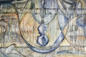 JOHANNES OLSSON (född 1945): Komposition, signerad och daterad Johannes Olsson -69, olja på pannå, 61x110 cm. Skador. Läs mer...