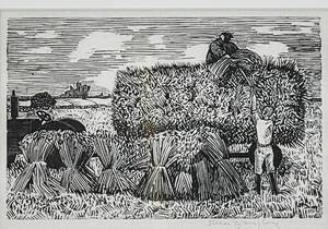 Sven Ljungberg (1913-2010), skördearbete, signerad, motivet: 14x21. Sven Ljungberg, född 1913 i Ljungby, Småland, död 2010, svensk målare, grafiker och författare.