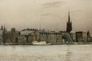 Berndt-Rune Jäverbrant (f. 1941), Sverige. Riddarholmen. Signerad, numrerad 150/ 360, daterad -88. Färglitografi, bildmått: 32x45 cm, yttermått inklusive ram: 46x58 cm. Berndt-Rune Jäverbrant, född 1941, Läs mer...