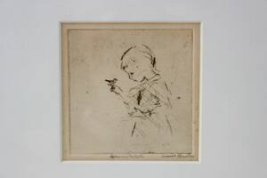 Louis Bastin (1912-1979), Pojke med fågel, motivet: 9x8. Louis Bastin, svensk målare och grafiker född i Moskva 1912, död 1979.