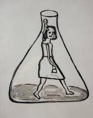 Lena Cronqvist (f. 1938), EÅ, Kvinna i flaska, motivet: 25x20. Lena Cronqvist, född 1938 i Karlstad, svensk målare, grafiker och tecknare.