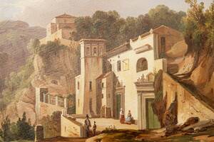 Oljemålning på pannå. Signerad och daterad 1922. Sydländskt motiv. 21x26 cm. Läs mer...