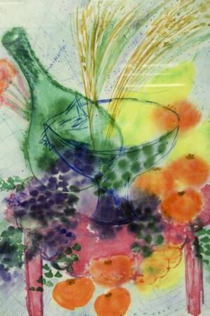 Lena A Linderholm (f. 1947), Stilleben, 147/225, bladets mått: 76 x 56. Lena Linderholm, född 1947 i Stockholm, svensk målare, grafiker och författare.
