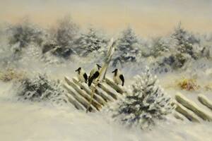 Henning Hougaard (1922-1995), Kråkor, signerad, 45x63 cm. Henning Hougaard, född 1922 i Köpenhamn, död 1995 i Malmö, målare,
