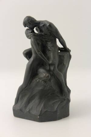 Anders Jönsson, efter, skulptur, patinerad gips. "Kyssen". Osignerad. Patinerad gips, höjd 45,5 cm. Ytsmuts, slitage, skrapmärken, ett par små nagg på basen med färgbortfall. Läs mer...