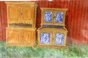 Evy Låås (1923-1999), Skåp, Stämpelsignerad a tergo, bladets mått: 36x55. Evy Låås, född 1923, död 1999, svensk målare, tecknare och författare.