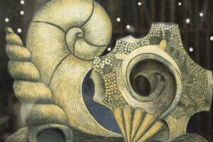 Nils G Stenqvist (1934-2005), 2001, 22/ 300, 4 fossil, motivet: 25 x 33. Nils Gunnar Stenqvist, svensk målare, tecknare och grafiker född 1934 i Stockholm, död 2005.