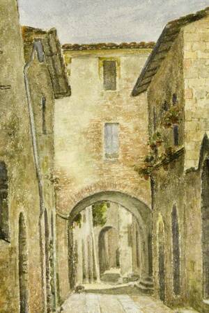 Akvarell, sydländsk stadsbild. Signerad och daterad 1955. (18,5x26,5) Läs mer...