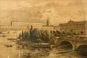 Tavla tryck 'Kungl slottet och nya riksdagshuset i...