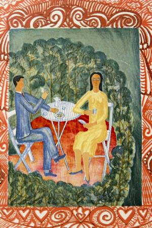 Mårten Andersson (f. 1934), Kaffestund, 229/400, motivet: 42x34. Mårten Andersson, svensk bildkonstnär född i Freluga utanför Bollnäs 1934, död 2017.