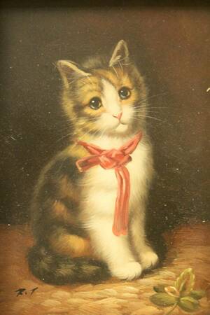 Avslutade auktioner liknande Oljemålning, Motiv med katt