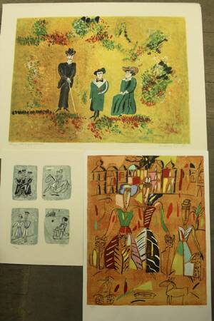 3 st, Madeleine Pyk (f. 1934), 137/200 + 46/275 + 73x200, Söndagspromenad + promenader + vinterlekar. Madeleine Pyk, född 1934 i Stockholm.