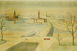 Einar Jolin (1890-1976), Sverige. Utsikt mot Riddarholmen. Signerad, numrerad 305/360. Färglitografi, bildmått: 47x56 cm, yttermått inklusive ram: 71x80 cm. Einar Jolin, född 1890 i Stockholm, Läs mer...