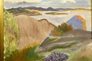 Bo Beskow (1906-1989), 1944, Kustmotiv med hus, 50 x 60. Bo Beskow, svensk målare, illustratör och författare, född i Djursholm i Stockholm 1906, död 1989.