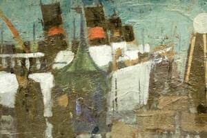 signerad, Hamnmotiv, 35 x 49, 50-tal.