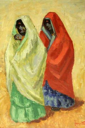 Kurt Jungstedt (1894-1963), Två Indiskor, 45 x 37. Kurt Jungstedt, svensk målare och tecknare född i Stockholm 1894, död 1963 i Stockholm.
