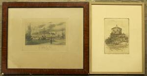Etsningar, 2 st. Stockholmsmotiv + Bohus fästning