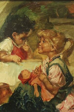 Charles Roka (1912-1999), Ungern. Signerad, lekande barn. Olja på duk, 80x63cm. Charles Roka, (på Ungerska: Károly Róka), född 1912, död 1999, Ungersk målare. Läs mer...