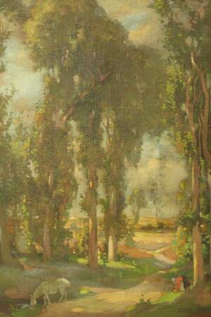 Spence Smith, skogsglänta med häst och kvinna, signerad Spence Smith, ramens innermått: 92x72.