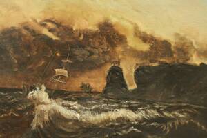 Okänd konstnär, kustparti med skepp, sekelskifte 1900, ramens innermått: 49x75.