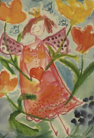 Lena A Linderholm (f. 1947), dedikerad och signerad, 53x39. Lena Linderholm, född 1947 i Stockholm, svensk målare, grafiker och författare.