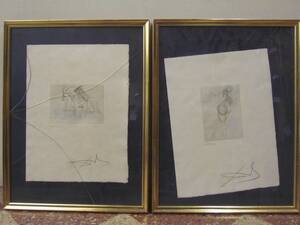 2 st, Salvador Dalí (1904-1989), 15x11. Salvador Dalí, spansk målare född 1904, död 1989.