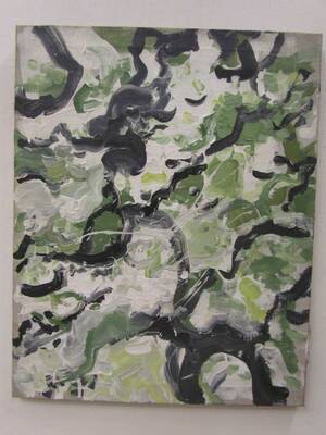 oljemålning på duk, komposition i blått och grönt, 35x35 Läs mer...