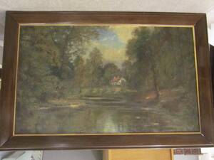 Ragnar Swahn (1882-1964), stuga vid sjö, 89x149. Ragnar Swahn, född 1882 i Kalmar, död 1964, svensk målare.