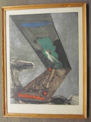 Oidentifierad konstnär. Signerad Taltavull, Det kom en fågel, . Signerad, numrerad 17/50, daterad 1994. Färglitografi. Bladets mått: 22x27 cm, yttermått inklusive ram: 38x46 cm. Läs mer...