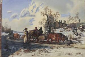 "Oljemålning, oxdragen släde"