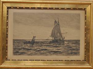Carl Locher. Radering. Marine, sign. i trykket, Carl Locher 1891. PÃ¥trykt: Udgivet af foreningen 'Fremtiden'. MÃ¥l incl. ramme 31x43 cm.