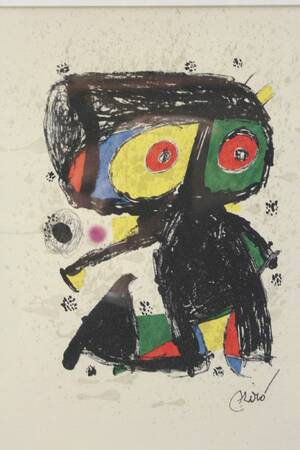 Joan Miró, färglitografi. Tryckt signatur. Ur sviten "Maravillas con variaciones acrósticas en el jardin de Miró". Utgiven av av La PolÃgrafa, Barcelona. Bladstorlek ca 50 Läs mer...