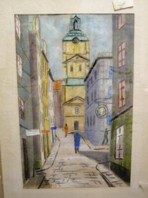 Stig Claesson Slas (1928-2008), Sverige. Utsikt mot Nytorget från Vita bergen, Stockholm. Signerad. Pastell, 40x56 cm, yttermått inklusive ram: 59x74 cm. Stig Claesson, signaturen Slas, Läs mer...