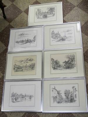 7 st, Forngren, Stockholmsmotiv, 21x26.