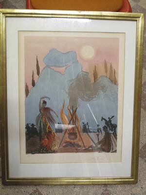 Salvador Dalí, "Toreros Triumph" ur "Carmen", 1970. Färglitografi. Signerad Dalì och numrerad LXXIV/CXXV. Bladstorlek 65 x 50 cm. Ej examinerad ur ram. Blekt. Något gulnad. Läs mer...