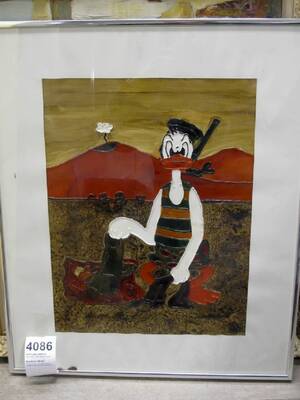 Föreställande Kalle Anka och Musse Pigg i abstrakt form. Signerad. Bruksslitage, repor. 25x32 (47.5x66.5) cm. Läs mer...