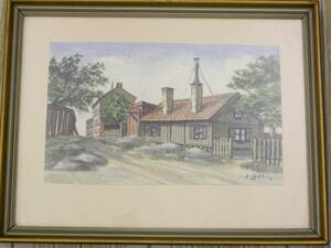 Frans Lindström (1874-1954), Sverige. Signerad, hus. Akvarell, bildmått: 13xx23cm, yttermått inklusive ram: 28x35cm. Frans Lindström, född 1874 i Stockholm , död 1954, svensk målare. Läs mer...