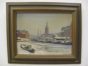 Gunnar Zetterström (1902-1965), Sverige. Vy mot Skeppsholmen. Signerad. Olja på pannå, 30x38, yttermått inklusive ram: 40x50 cm. Gunnar Zetterström, född 1902 i Stockholm, död 1965, Läs mer...