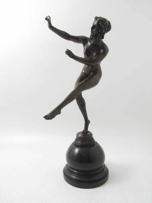 Okänd konstnär, 1900-tal. Skulptur. Brons. Ballerina. Skulptur i brons, signerad av okänd konstnär samt daterad 1955 Leningrad. Höjd 48, längd 45 cm. Obetydligt ytslitage. Läs mer...