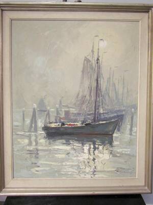 Oidentifierad konstnär. Signerad W Byron, Marin. Signerad, 37x49 cm, yttermått inklusive ram: 53x66 cm. Läs mer...