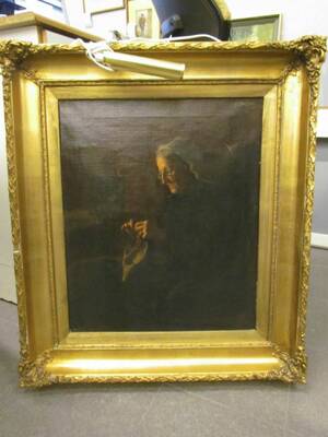W M Palin, 1901, Moter Knitting in lamplight, 61x52.