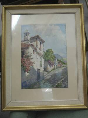 Signerad, Sydländskt bymotiv, 45x32.