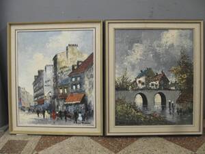 2 st. äldre oljemålningar på duk, oidentifierad...