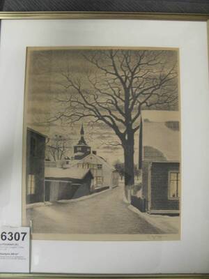 Reinhold Ljunggren, litografi, 'Motiv från Trosa'...