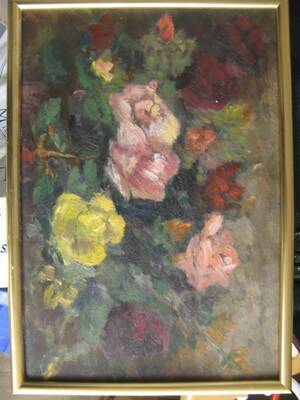 Oidentifierad konstnär. Blomsterstilleben. Signerad. Olja på pannå, 39x35 cm. Läs mer...