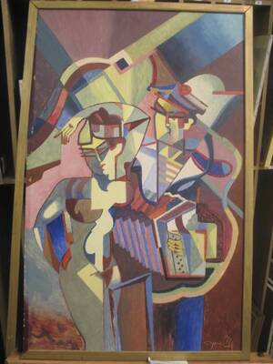 JAN SIGFRID ALFONS CARLSSON (1900-1985): Figurkomposition, signerad och daterad -70, olja på pannå, ca 79x54 cm. 849324. Läs mer...