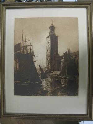 HARALD SALLBERG (1895-1963): Vy från Stadshuset, signerad Harald Sallberg, etsning, 30x20 cm. 856940. Läs mer...