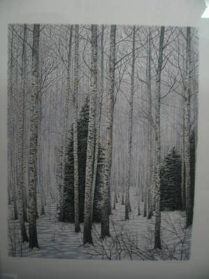 Konstnär född: 1953 Motiv av björkskog Signerad med blyerts: Mikael Kihlman Numrerad: 46/310 Mått bildyta: 50 x 39 cm Mått med ram: 65 x 54 Läs mer...