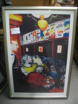 Peter Dahl, "På Restaurang Tennstopet" Litografi signerad och numrerad 306/375, bildyta ca 42x56 cm Ej examinerad ur ram. Lös dekordel till ram medföljer Läs mer...