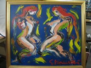 Oljemålning på duk, signerad. Figurkomposition i blått. 100 x 100 cm. Läs mer...